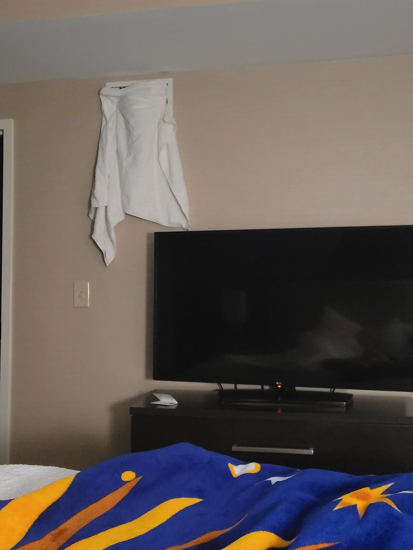 The hotel is bright and clean. Our room was clean with a comfortable bed and comfortable pillows. There was plenty of parking and good lighting in the parking lot and outside of the hotel. We checked into the hotel after a very long day at around 1:30 AM. The gentleman behind the counter told us that a king bed was unavailable even though that’s what I booked on the app, which was not a big deal,things happen. I asked him why and his reply was I don’t know why they didn’t save one for you. I’m just the night shift. I explained to him the reason I was asking was because I booked online in the evening on the same day of check-in and just wondered if this was the reason it was unavailable. Again, his very flat reply was I’m just night shift. I don’t know why they didn’t save one for you. We then requested late checkout, he scribbled our room number and 1 PM on a sticky note. My husband and I had the conversation on our way to the elevator that the gentleman that checked us in also told the lady in front of us, a few times, that he was just the night shift as a response to her questions as well. We proceeded to our room. In our room after all was a king size bed. My husband went out to look for ice and could not find an ice machine on our floor. We attempted to go to sleep, but the guest on one side of us we could hear all of their conversation, the guest on the other side of us had a crying baby all night(those poor parents!). Again this was all after 2 AM. We slept very little and at 10:30 AM. housekeeping knocked on our door. My husband answered the door and explained to the staff we had late checkout, the person annoyed said what time my husband said 1 PM and the person walked away. We showered, there was no body wash in the shower. Again this in itself not a big issue. We went to check out at 1 PM and as the elevator doors opened and we were headed towards the front desk the lady was explaining to this old couple directions all the way down the hall. They both shuffled very slowly past us. At checkout, my husband asked where the ice machine was and sure enough, it was the same directions the lady had just given to the old couple. I took our luggage out to our car while my husband went to get ice in our cups. When my husband finally got to the car, he said how far away the ice machine actually was. I can’t imagine that old couple making it that far.