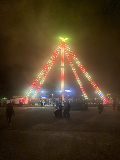 Wonder Woman Lasso of Truth is a super gigantic ride, but unfortunately it took 2 visits to discover this amazing ride! Finally we found it! It’s truly huge and beautiful and scary too! I don’t know how many people enjoy the ride at a time. When you are on the ride you will be super thrilled and amazed with its size and speed as well as you will be scared like heck when it’s go upwards! Both kids and adults like this ride, but not many people find this easily as it is kind of a hidden gem of the Six Flags. Once you enter the park make a right turn at the fountain and look for signboard for rides. Justice league, cyborg spinner you will find with this ride. Hope you will enjoy the ride!