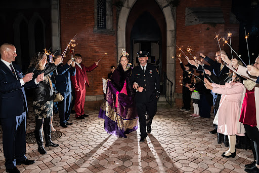We also used the Merrill House next door for our guest of honor to have some photos taken while the guests arrived at the church building. This home looks like the original owners walked out the front door in 1885 and not a single thing inside has been moved since. It was really cool to see even their shoes, gloves, and bedside table with books still sitting out. Photos in this house turned out to be stunning! I would only recommend asking them to crank the AC up the night before because it was definitely warm in there for ladies in ball gowns and gentlemen in long jackets.