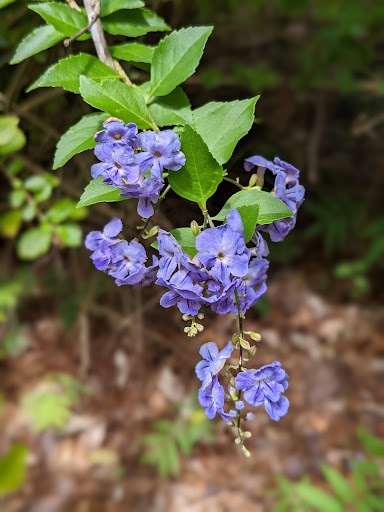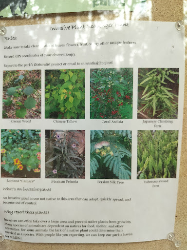 It is a small public park with a playground, several picnic tables, bathrooms, a fenced dog park trail, and several 1 - and 2-mile walking loop trails marked with colored dots. Some aggressive mountain bike trails/obstacle bike courses, a nature center, and an archery course(paid membership). This is a protected natural flood plain strip along the Ortega river about 5 miles long and 2 miles wide running parallel to hwy17 and the river. So it is flat muddy pine trails, an easy walk path, but lots of tree roots don't recommend atvs the trails aren't wide or well paved. Great fenced for dog area. Otherwise, leash law is posted everywhere . Lots of small, sleepy wildlife, squirrels, armadillos, owls, lizards, birds, bugs, and turtles. Very rarely, you might spy a deer, otter, nutria, snapping turtle, or the swamp puppies, herbert, and gerald near the big island trail bridge. Please remember to not litter or feed and wildlife. They are being looked after. Like this park is right next to the CSX train tracks so nothing big or territorial wants to live nearby, so it's not exciting but it's good for a daily walk, well maintained...