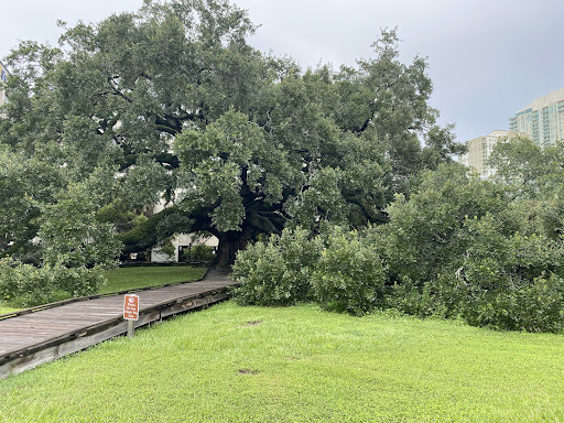 Read moreMy family stopped in here for a quick family photo session and it was a really cool experience. This tree is absolutely enormous, pictures just do not do it justice at all. The tree is over 200 years old if I remember correctly and is massive at its base. Once you walk up under the branches that droop down to the ground, you are so engulfed in the tree that you feel like you are in a completely different park. This beautiful tree made for some really awesome family pictures and it was fun to learn about the history of the park and the tree over the many years. I bet this would be really beautiful lit up with lights at night, but were visiting during the day so unable to see what that might look like. The only drawback was there is a large parking garage behind it that can take away from the natural feel of it a bit, but it is still a marvel to see...