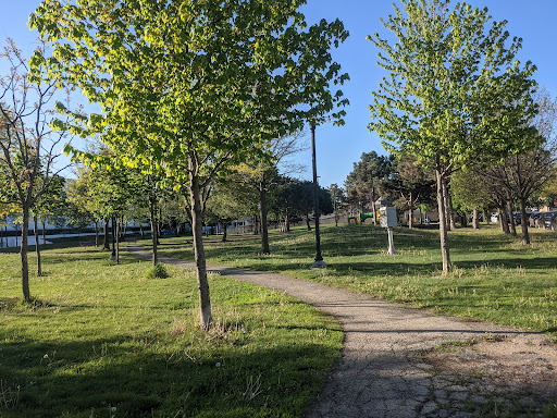 The park is nice, a but run down in ways (used to be a steering wheel which is just broken off, asphalt is very broken, a few benches could be in better condition) The playground has two baby swings, an adaptive swing and a regular swing, a toddler slide and a couple bigger slides, a play space to make noise, a rope climber and a sand box.