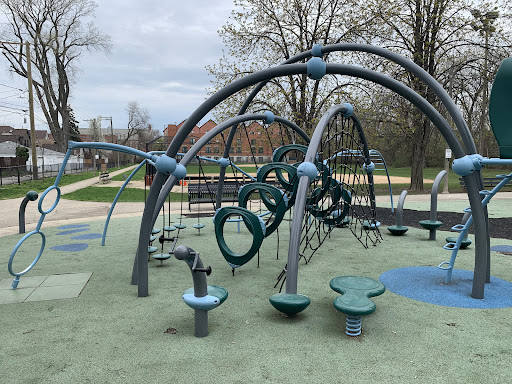 Set between a quiet residential alley and a paved trail (called the Sauganash Line Trail, the Valley Line Trail, or the Skokie Valley Trail at various points) Sauganash Park features a solid playground. There is a smaller play structure for younger children and another area featuring a large semi-circular climbing net and suspended ring climbing structure. There is the standard set of swings and a little 'music area' with some musical panels. The play area is not fully enclosed but it is fenced from the alley. There are plenty of benches and picnic tables near the play area and large trees provide shade throughout the day. And the nearby field house provides access to bathrooms in this otherwise...