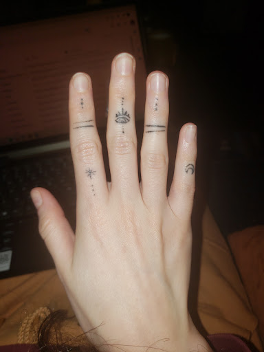 in terms of the actual shop itself, i think the only thing that brought me any anxiety was that a lot of artists are close together with no walls covering them so i was able to see other ppl get tatted and they were able to see me. it didn’t bother me though bc my pieces were on my arm. i think theres a small separate room but when i was there it was only used for piercings so idk. also when ppl would walk back and forth by me, i could feel the floor moving with them, which therefore made me and claudia move with them 😭😭😭 to be fair tho, claudia seemed like she was used to it and it felt like she either paused or stabilized herself whenever that happened.
