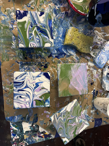 Carri, the artist and owner of CITY SWIPES, has expanded her vision to encompass a variety of mixed media art. Not only is her work displayed throughout the studio, but she also offers up space for people to come in and create their own masterpiece! We stepped into the back space of the studio where there was even more art, multiple shelves loaded with paint, and a giant paint-spattered table. Carri enthusiastically explained the process, and the entire experience just put me into a creative, relaxed zone. I absolutely loved everything about it—and I left feeling a newfound connection to my creative side. Thanks Carri for this...