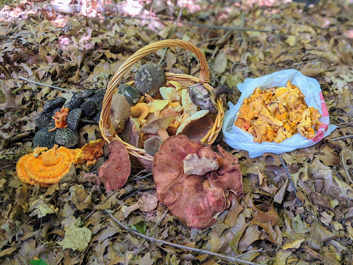 Our hike resulted in finding 7 or so species of wild edible mushrooms which by Fisher's account was definitely a bit of luck and not a common experience. Altogether we probably came across over 25 species in total and learned a lot! It was amazing to walk away with so many wild mushrooms to try at home safely thanks to his expertise.