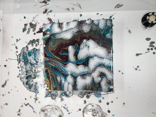 The instructor was fantastic, providing helpful tips and helping tilt the canvases. It was amazing to see how each person’s artwork turned out completely different, with beautiful swirling patterns and unexpected color blends.