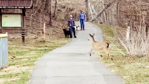 Read moreGreat wooded trails for exercise and dog walking. The trails are mostly in the woods, so well shaded for avoiding the summer sun to help keep your furry friend cooler. The trails wind up and down the ridges of the two hills that envelope the park to get that heart rate going. Hiking the total loop is close to 4 miles, but there are several ways to partition it for shorter stretches. The park also hosts a frisbee golf course and 3 baseball fields, as well. There are bathroom facilities at both ends of the park, trail benches along the way, and doggy waste bags for picking...