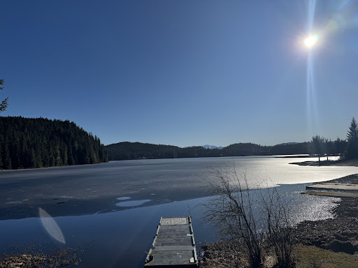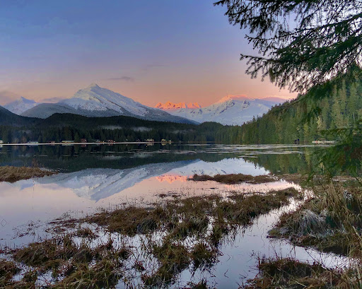 Auke Lake is a 160-acre lake located in Auke Bay in Juneau, Alaska. Dolly Varden, cutthroat, steelhead and four varieties of salmon all live in Auke Lake. The views of Mt. McGinnis and the Towers from the Glacier Hwy side of Auke Lake are one of the most photographed in Juneau and Alaska.