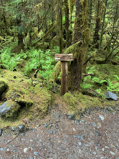 There is a short hike over to a great lookout to see both nugget falls and the glacier from a distance. Hiwever you can take the somewhat rugged hike that ascends over 900 feet and meanders through the forest. At one point you will climb 160 to 200 steps with lots of rocky terrain and steps along the trail. DO NOT ATTEMPT IF YOU HAVE ANY ISSUES CLIMBING STAIRS OR WITH BALANCE. Great views at several locations, running creeks, waterfalls, and forest...