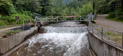 This short and easy hiking trail runs along Gold Creek atop a historic wooden flume installed in the 1890s and still in operation today (see pictures). The Flume Trail is made of wooden boards that can be slippery when wet. This flume is part of Juneau's first hydroelectric power plant and is heavily forested with alder, spruce, hemlock, cottonwood, and willow trees. Here you can enjoy views of birds, red squirrels, porcupines, and the occasional bear, as well as Gold Creek, the canyon, and waterfalls. For a longer hike you can start the Flume Trail at the Basin Road trailhead, hike through the Highlands neighborhood and end at Cope Park where you can access Gold Creek beach, picnic tables and...