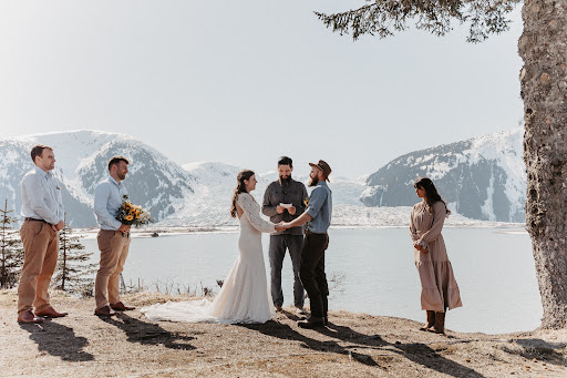 First off, we planned our entire wedding in TWO months and two days, and we happened to be planning it around the very beginning of Wings’ summer flying season while they were prepping staff and training pilots. Our wedding also happened to be the very first Otter trip out to the lodge this past 2024 season - they totally went out of their way to make this happen for us! The planning and considerations of the staff over at Wings Airways was so SO appreciated. Sean (husband) and I had 15 wedding guests piled in two airplanes, and when we arrived at the airplanes on wedding day, Wings staff had even unexpectedly decorated the inside of the Otters for us! We felt SO loved the way they went over the top and took care of us - from decorating the airplanes to scoping out the best location at the actual lodge for us to have our ceremony (they found the only little snow-less patch of grass for us with the stunning glacier backdrop :))
