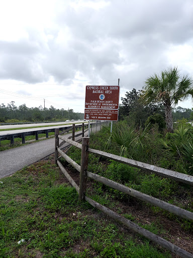 Guess what I caught at "Cyprrsd Creek Natural Area South'? It's something you would never guess. I caught a ""Wide Mouth Bass? It's a surprising hidden đgem in our on back yard so never get stuck inside again. The beauty is breath taking and spectacular. The water source is "brackish " but it" overflow into the Loxahatchee River blends into fresh water. I was a guest by way of the West Palm Beach VA Medical Center and under Supervision of three Palm Beach County Employees on site who maintains its pristine beauty. They served as both conservationists and knowledgeable guides with the personality that is needed to fit the job description. Your tax payer dollars are at work here. The area is well maintained, with very minimal if any debris noticeable ( there are always litter bugs who forget their mindfulness). They assisted in our experience by providing not only the poles but the shiners we used as bait. First I want to thank the Man above for blessing Pslm Beach County with this Natural Area only His Hands could make and the wide mouth bass I caught for the first time in my adult life with a rod.and reel. It took me back to my childhood and reminded me of parents who took me to places such as this and taught his daughter how to fish. I finally caught something (better late than never!). Thanks also to the West Palm Beach VA Medical Center, the trip organizers (a a very special employee) and it's not a myth, " At The West Palm Beach VA Medical Center it's Veterans ALWAYS come first. Thank you God for this pristine, Natural Wonder only the ...
