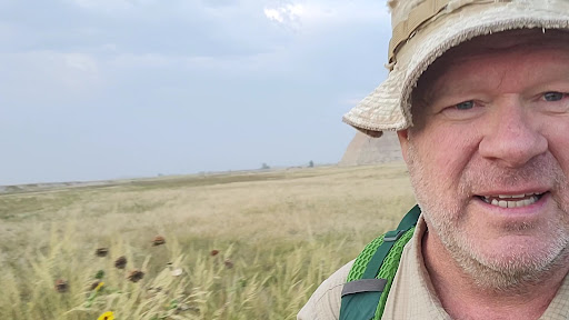 We hiked out-and-back for a total of about 2 miles in about 1 hour, through relatively flat terrain. It was magical walking through the unique rock formations and the waist-high grass. Note that the ubiquitous Yellow sweetclover (Melilotus officinalis) is a common exotic, invasive species at Badlands National Park. We found beautiful prickly pear cactus in bloom along the way.