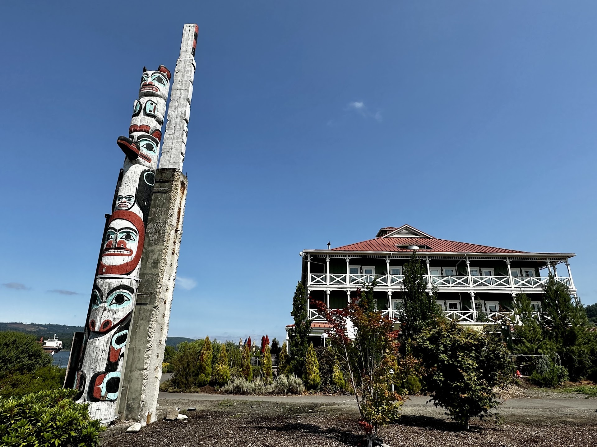 it was sunny & saw beautiful (• totem poles - people (nice lovely diversity) - boats &) sunset (have to paint it (& shipwreck beach) after/if i feel a little better, no 1 wants a painting with puke - stuff on it.) while having picnic after playing &...