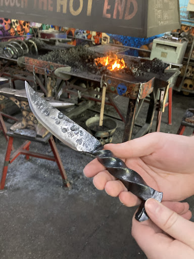 Railroad spike knife- Really awesome and informative class! The instructor explained the metal working process at a high level so it was easy to understand exactly what was happening as you were working it.