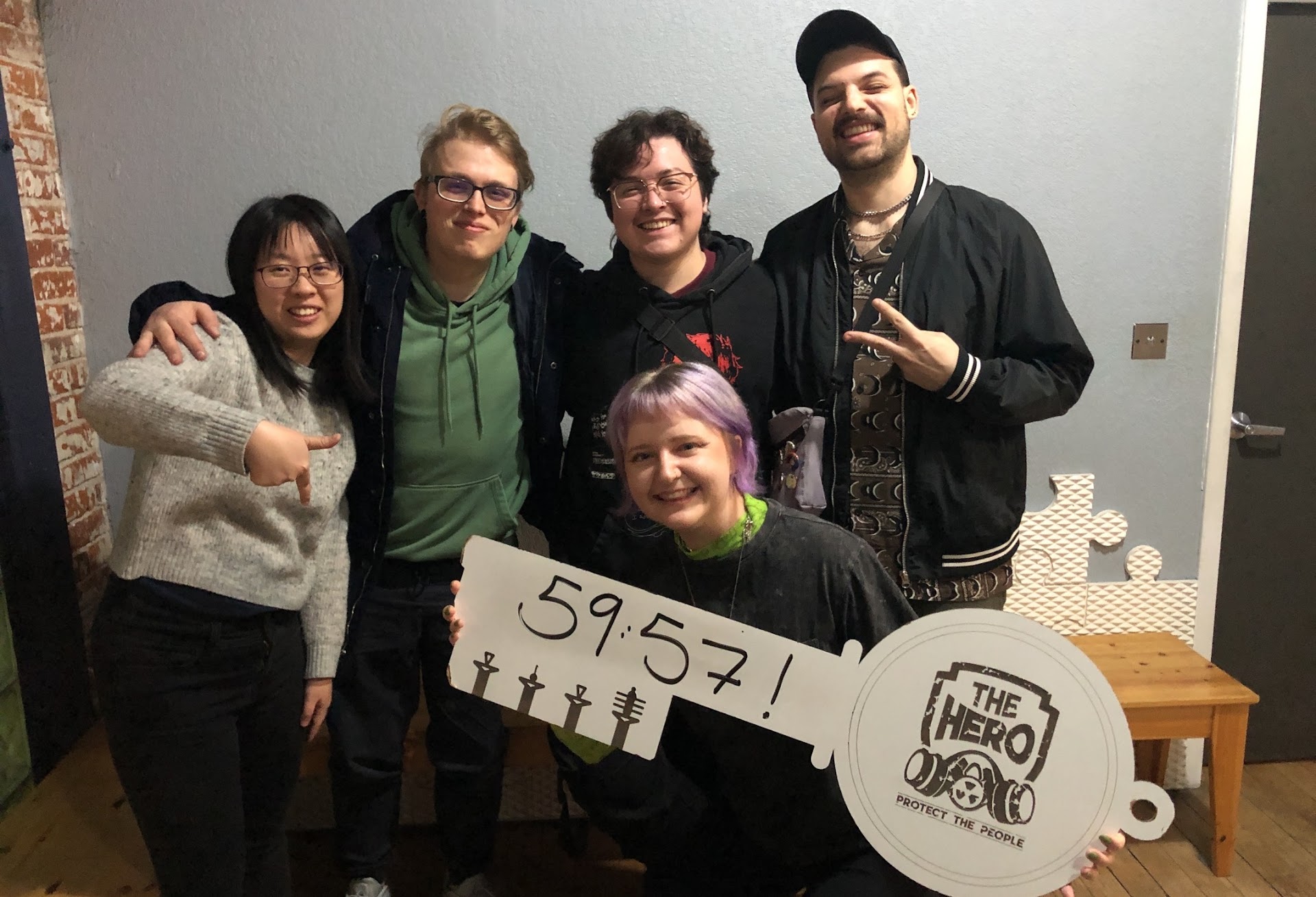 A terrific escape room experience! We had 7 of us ages 14 to 53 working on "The Hero" and it was challenging but we solved it! We were more than happy to drive in from outer suburb for this. The official rate is five stars for the experience -- four stars for the location and for the photo experience.