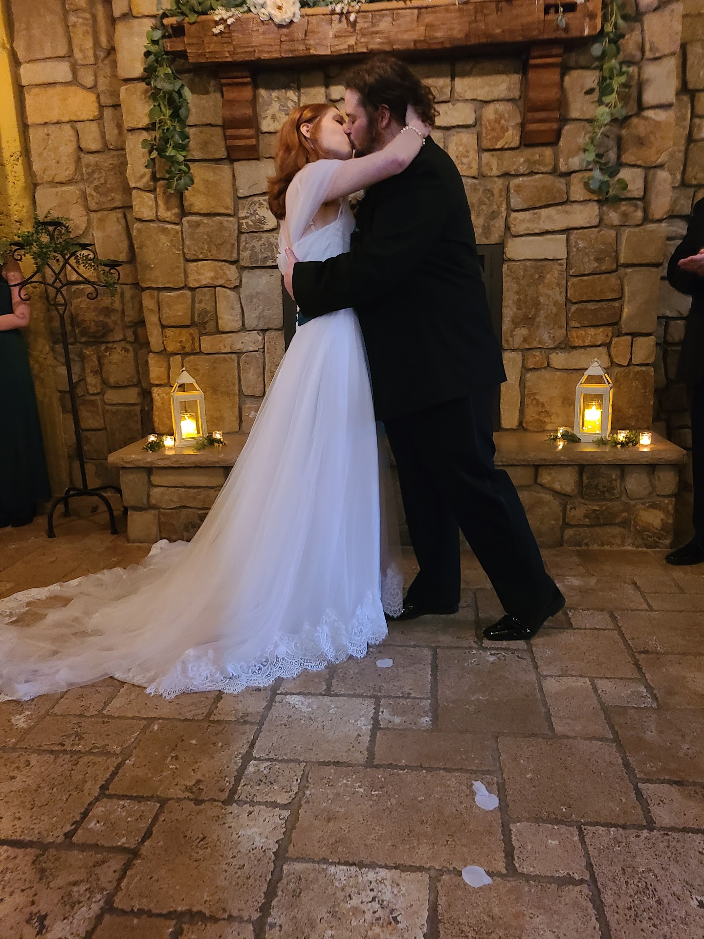 This venue was the perfect location for our son's rehearsal dinner. The night of our event - We walked into the venue and were immediately transported to a warm, laid back atmosphere with our own music selections playing over the sound system. We had a cocktail hour upstairs with bar and appetizers set up there. Except for small centerpieces on the bar tables (bar tables provided by Cellar 222) and a couple lanterns at the entry - we did no other decorating. The space just speaks for itself. After cocktail hour we headed downstairs and were further transported to a warm, romantic and relaxing dinner. We served 75 guests at round tables (provided by Cellar 222) that we set up around the perimeter. I initially worried about how this would flow and it was just perfect. The buffet was set up right outside the kitchen and we had a bar set up downstairs as well. There is no need for much decorating downstairs either. The ambiance downstairs is so romantic. I had lanterns and magnolia leaves on each table and a few on the fireplace mantel and that was it! The light from the lanterns further set the romantic tone. Just a warm, romantic, inviting space. Everyone mentioned what a great space it was. We were completed pleased. (Lanterns provided by Cellar 222 too!)
