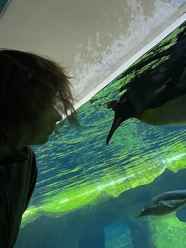 The children had fun watching the penguins act cute and swim around! 🐧 We happened to catch them during feeding time, and they appeared to be having a great time. 😊