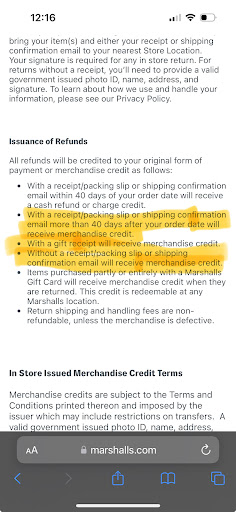 This place used to be amazing with customer service and not so good on organization. Now it’s flip flopped. It’s much more organized and easier to find things- however customer service has tanked. I went in today to try to return a small portion of a large online order. 3 associates including a manager tried to tell me they could absolutely not do a return without the packing slip. I had the order number, confirmation email and everything. Along with tags still on all the items. One mentioned giving me store credit but the manager shot it down. According to their own return policy I should have been able to get store credit and also been able to provide my confirmation email. So there were multiple ways they could have accepted my return with minimal critical thinking skills. They refused both. I don’t understand how not even one out of three associates could figure out to help me. They have zero knowledge of their own return policies! I love shopping at Marshall’s but these people need some serious training!!! I thought I was out like $40. Now I have to make another trip into the store with 3 kids in tow to present my case and provide education myself like a regular...