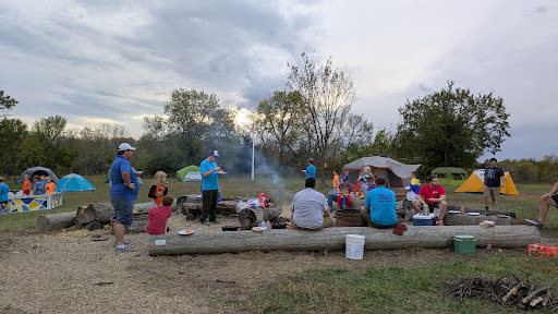 Camp Bromelsick is a simple camping area with plenty of space, designated camping sites, a reasonable dirt road, a lake, wooded areas, fields, and a large shelter. It has proximity to Clinton Lake.