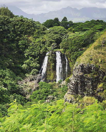 Opaekaa Falls View offers one of the most beautiful and easily accessible vantage points on Kauai. Located along the Wailua River on the island’s eastern side, this stunning waterfall cascades approximately 150 feet into a hidden pool below, surrounded by lush, tropical vegetation.