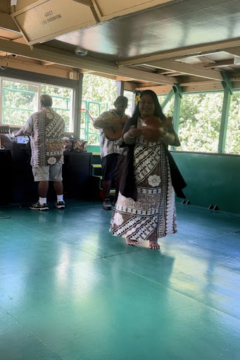 The boat ride back we learned to hula.