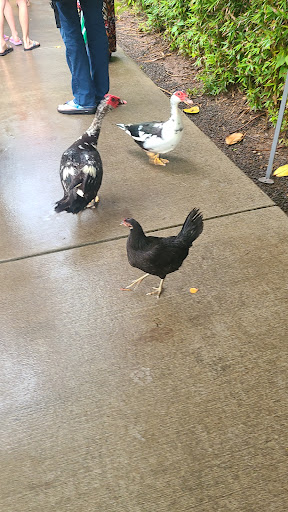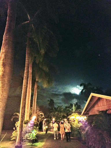 Now let me back up. There are LOTS of birds in the garden - chickens, ducks, nenes, red-crested cardinals, and peacocks. You can purchase feed with cash where you check in. The evening begins with a tram ride through the property with narration from the driver. You have roughly an hour to explore the flora and fauna and take pictures. DO NOT forget the bug spray. It is a truly beautiful and tranquil place. Then there is the Imu ceremony where a lot of rich Hawaiian history is shared. Do not miss it!