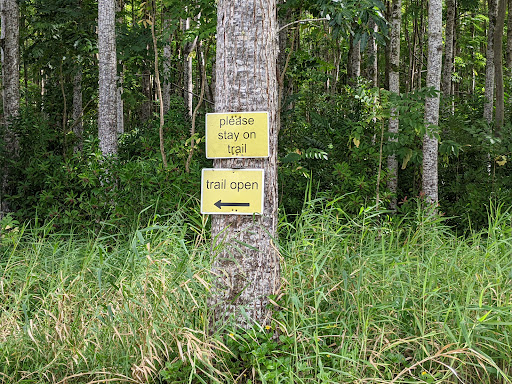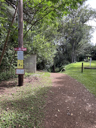 Nice walk on Wai Koa trail. This is no longer a loop, but an out and back walk. Beautiful, lush scenery the entire path with clearly marked trail. Just follow the yellow signs. Trail starts just past the dog park. You may catch a glimpse of the horses grazing in a field to the side of trail. This is private property, so do not try and touch the horses or bother them.