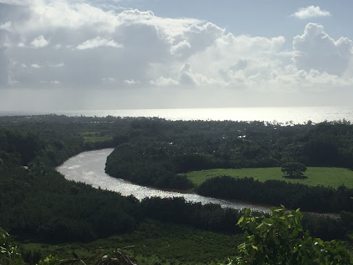 Read moreBeautifully green valley of wailua river. The word wailua means "two waters" in Hawaiian, and is an accurate name for this area surrounded by both rivers and the ocean. If you notice in the picture, two ways with two different colors ate merging into one. A good lookout and a...