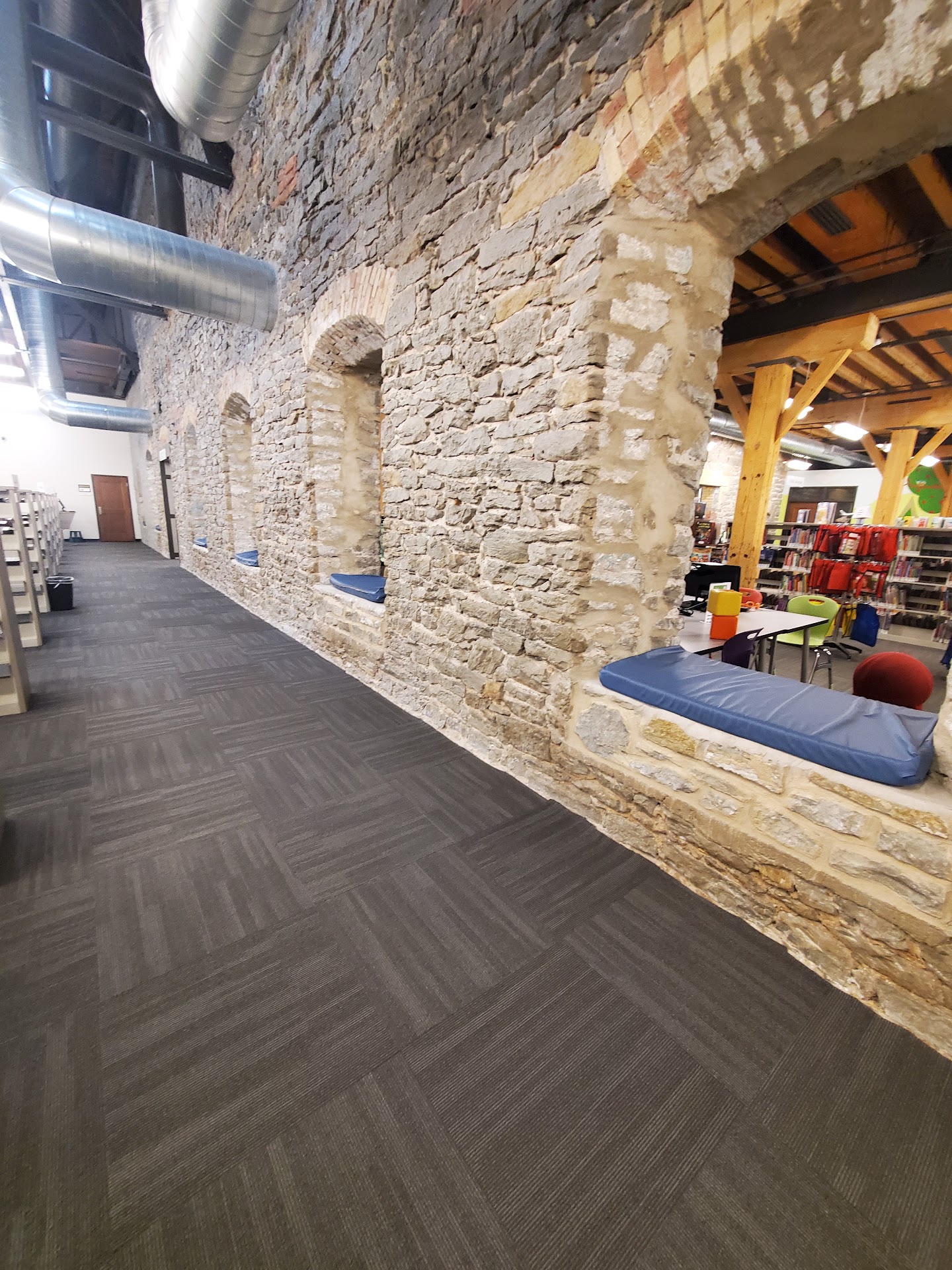 Very nice library. I love the vibe here. It has a very nice big parking lot. The elderly and women who are expecting can park in the front of the building. Driving down around the building, in the back, there's more parking. The entrance to the back is into the lower level, and you will take an elevator up to the main floor of the library. The lower level has histories of the library, which is very cool. I belive there is a reading patio outside on the side of the library. I am not sure since it's still cold. When we were there, it wasn't busy or crowed. The lady at the counter is nice and greeted us as we returned a book from appleton library that we checked out a...
