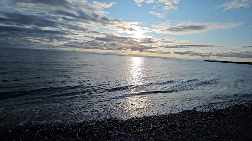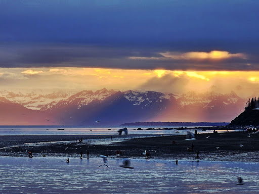 Quiet reserved long Beach at Cannery road. The far entrance with larger parking and restrooms is highly suggested. Stunning views out upon water and behind you are stunning views of stunning houses with what appears to be stunning people inside. stunners. And on those tad bit nip nights be sure to grab the cam and snap those oh so stunning alaska sky night lights dancing in the sky.....