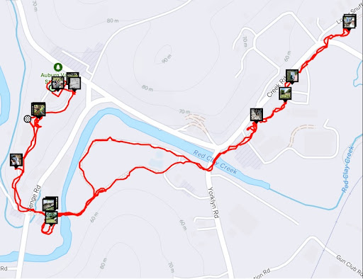 Excellent introduction to geocaching by Teresa Pierce, Program Manager at Auburn Valley State Park. We practiced with 3 geocache locations surrounding the Auburn Heights house, Marshall Steam Museum and the green "iron giant" historic bridge over the Red Clay Creek. With this knowledge and using the Geocaching app, we found 2 additional geocaches including one premium geocache near the Dew Point Brewing Company along Creek road and Lower Snuff Mill road.