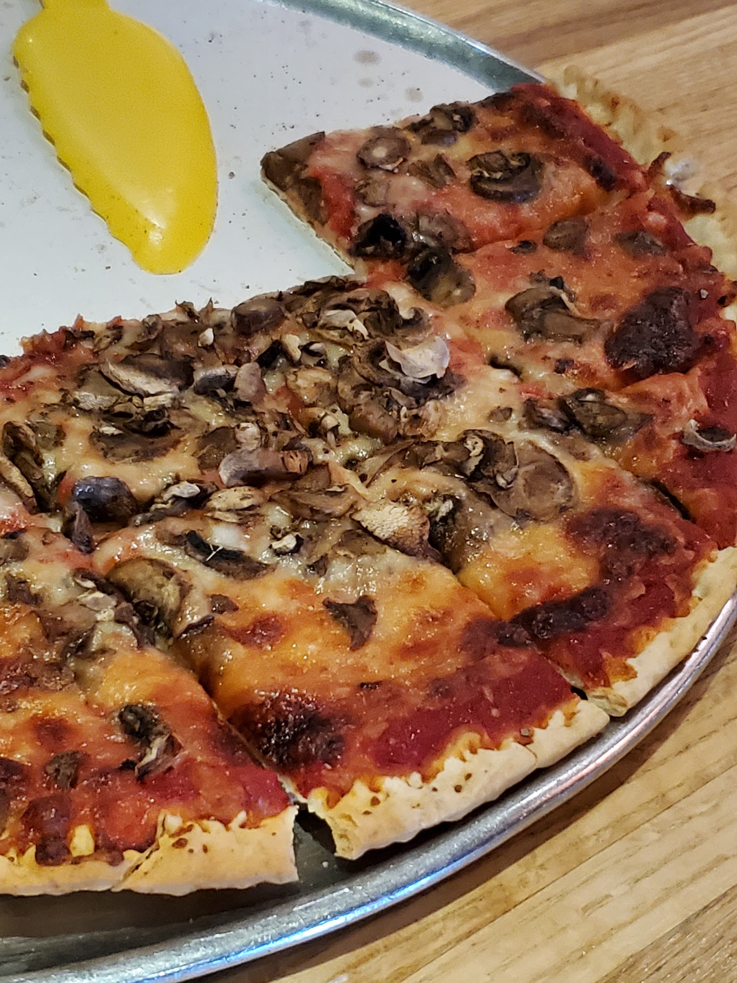I am currently sitting inside the restaurant waiting for my remake pizza. I ordered gluten free with Canadian bacon and green peppers. My husband got regular pizza with cheese and mushrooms. When I saw my pizza I was kind of happy looked pretty good. However when I tried to take a bite I damn near broke my teeth the crust was hard as a rock. My husband's pizza looked horrible from the start but he's not one to complain. I told my waitress that my pizza was overcooked and could she have them remake it. She took it to the kitchen and came back with it saying they wouldn't remake it because it would be the same. She sent the manger over to me and I told him that all he has to do is cook it a little less. He said it wouldn't help so I pointed to my husband's overcooked pizza and said ok what's your excuse for his? In the end they remade my pizza and it was much better. If you're going to eat here gluten free tell them in advance not to overcook. I doubt a lot I'll ever go back. Never heard I'm sorry no discount of any kind. Not a great experience. The photos I've added are my husband's burnt pizza with mushrooms and my remade gf pizza with green onions and canadian bacon