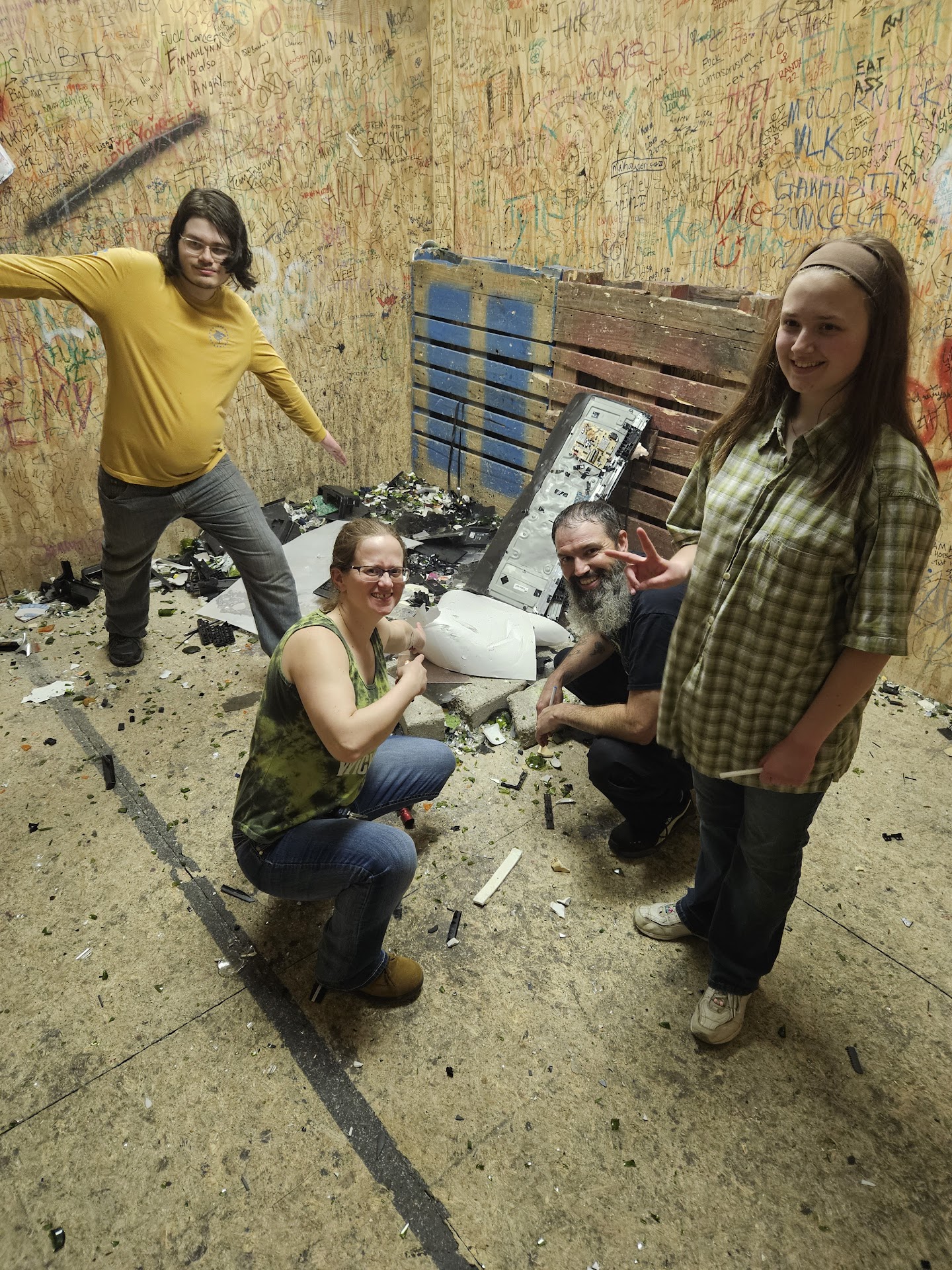 Cons: Despite wearing appropriate attire and their jackets, gloves and shields we still needed up with some issues. One of group had gloves that didn't seem to be as heavy duty. She had too much adrenaline to notice until after that glass had cut her hands up pretty bad and she had multiple cuts on her arms as well - not deep, but annoying. She also was wearing military style boots, but ended up with glass in her shoes (we all did actually). I had to toss my shoes after because some larger pieces of glass and metal from the printer had embedded into the bottom through the whole shoe. We also all ended up covered in microscopic glass particles that made us look like we had glitter on our skin. It made me itchy, but a shower afterward took care of it. I know most of that is unavoidable, but something I wish I had anticipated before.