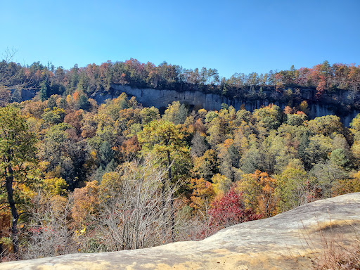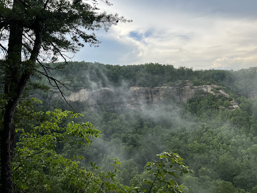 Excellent access to hit Indian Staircase & Cloud Splitter all in one ambitious hike. Not a ton of parking at the trailhead. Take Bison Way Trail then connect to Sheltowee and take a right on an unmarked trail to get to Indian Staircase. Easy scramble if you are a capable person. Provides a stunning view once to the top. After we walked along the left of the ridge rim to get the the cave that is around there. Walked through the cave and ended up on another ridge trail that is insane. So close to the cliff edge with a gorgeous view, but still felt safe. You’ll eventually hit pine growth and walk in the forest a long while to get on a steep unmarked trail to get to cloud splitter. Keep climbing until you see the ropes. Use the ropes to scramble up and experience an extremely rewarding view. Afterwards get back to your trail, back track a bit then take an unmarked trail with a step downhill to the road. You’ll walk the road to get back to Bison Way Trailhead. There is your ambitious loop to hit those amazing features! Highly recommend downloading the...