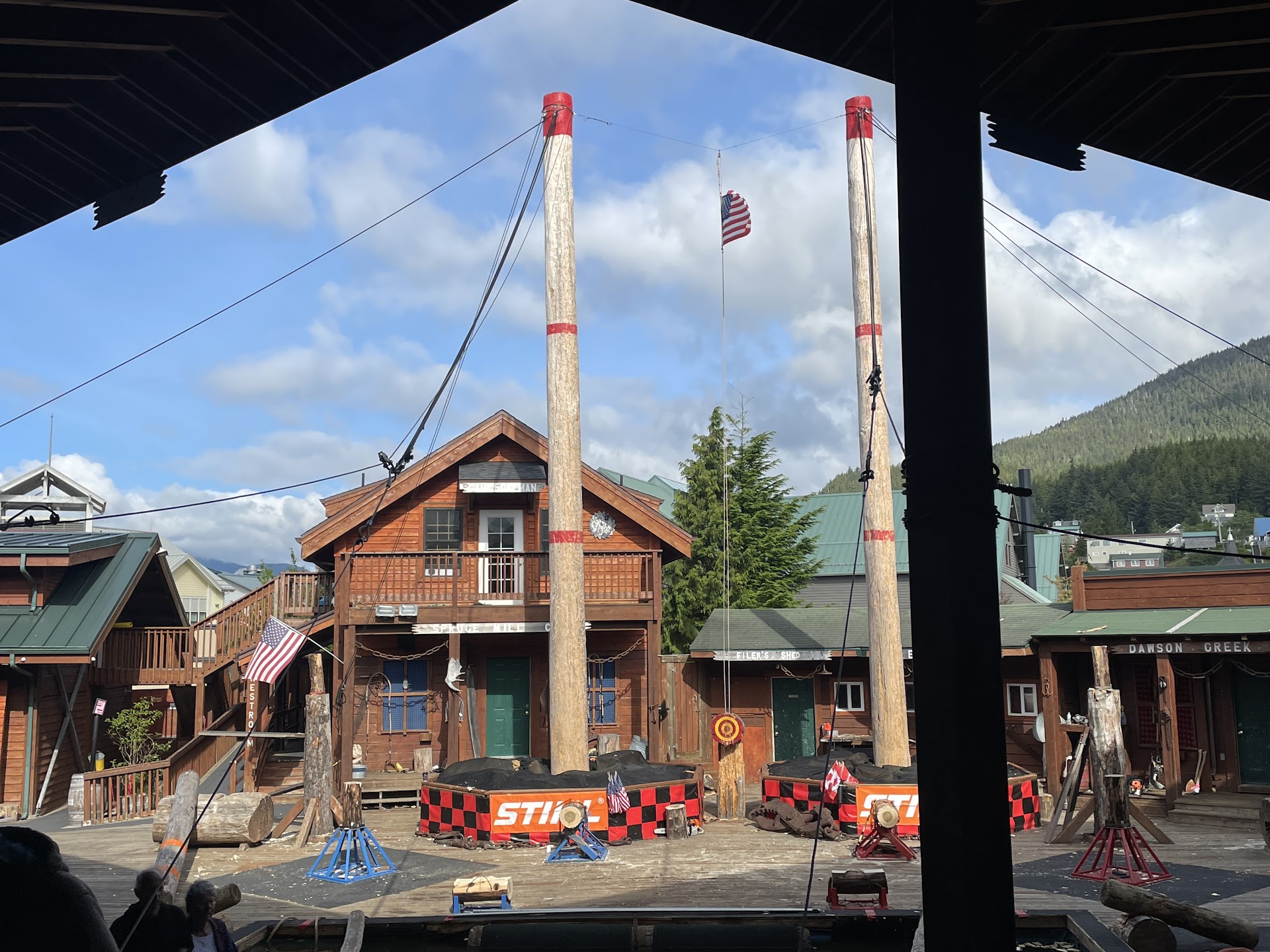 Now this was fun! My friends and I were in Juneau for only a short couple hours during a cruise, but we had booked a couple seats at this lumberjack show! It was so cool. The two competing teams were Americans vs Canadians, and there was a young lady narrating the competition who was the daughter of a lumberjack!
