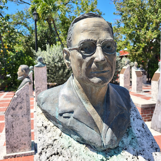 Read moreThe sculpture garden is located in Mallory Square in front of the Waterfront Playhouse and adjacent to the Key West Chamber of Commerce. Built in 1997 it's free to browse the who's who of Key West history. The first thing that came to mind when I saw it was that it looked just like the Haunted Mansion, my favorite ride at Disney World. I think it is the green color of the busts that bring the image to mind. I half expected to hear them start singing Grim Grinning Ghosts.
