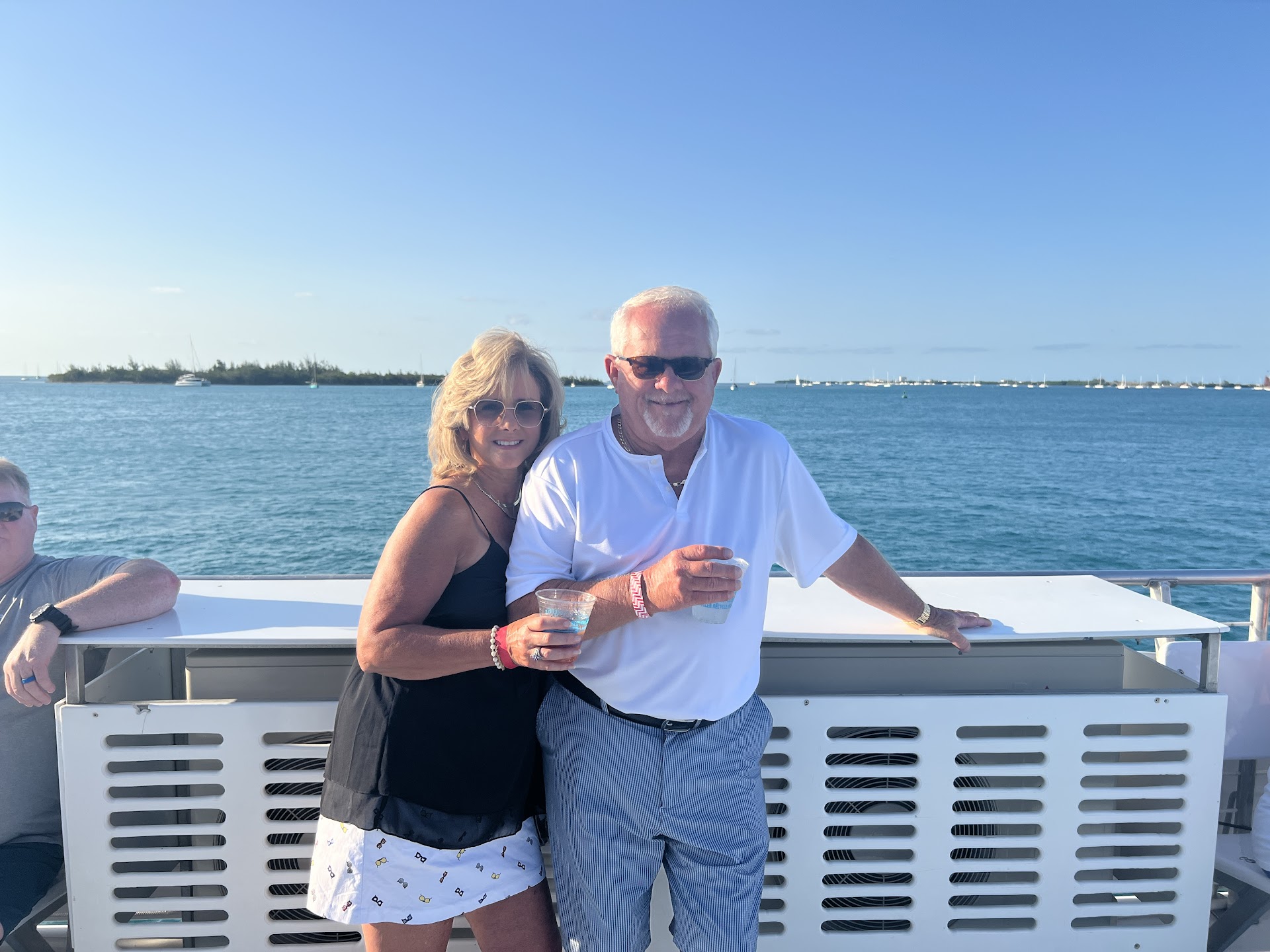 Update: since we had such a great time on the Sunset Cruise, we chose to do another excursion with Sunset Watersports. Like the first, it was wonderful! On Monday, May 25th, we went on the 1/2- day Sandbar excursion with Captain Madison. Madison was patient, funny, and attentive. She took us to a great spot where we observed a pod of dolphins. It was amazing , especially when two dolphins were mama and calf. Then we went to the sandbar for an afternoon of water fun. The crew Stephanie and Nic worked extra hard making sure everyone had plenty of food, drinks, and fun. The drinks were unlimited, and the crew did not disappoint anyone. They actually refilled beer and mimosa cups while out in the water! For us, this excursion gave us an opportunity to enjoy the beautiful turquoise water of the Keys. At one point, my husband looked at me and said “This is paradise!”