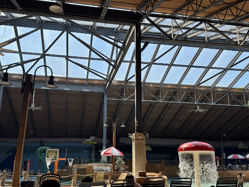 The water park: this was our main selling point for the stay. And to be fair, the kids had enough fun that we'll be planning for water parks in future vacations. But not here. Per the attendant, the boogie board area looked perpetually off unless you ask about it because "it's kind of broken." When we checked into the water park 2 hours after opening, there was no one watching the kids slides in the free play area. Of the three larger slides requiring inner tubes or rafts, only one was running, and it had streaks inside at each curve. The wave pool was the first attraction for one kid, until we felt how icy cold it was. No wonder no one was swimming in it. We tried coming back to play more after the terrible pizza, only to discover the staff were closing out more than 30 minutes early. To their credit, they restarted the water so we could go down the one working slide, but if there were lights available to brighten the place up, we didn't see them used.