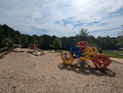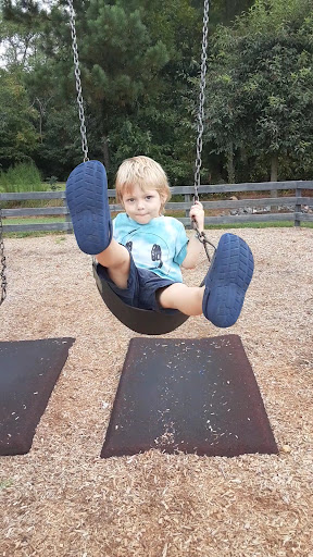 Best park around! Clean, friendly staff around and kids are respectful while playing..no graffiti etc...they have events there year round and also food trucks which is a nice add. Its conveniently located across from a bank and close to food lion if you want to add a picnic lunch to your park experience that day! Picnic tables, and barhrooms( cleanest I've ever seen!) DOGS WELCOME! They have a DOG park separately for your dogs that has a water bowl and bench for the owners to sit while your dog plays. Theres no skateboards or bikes allowed in the track area that goes around the park..good for walking, and a great place for your kids to get wet n cool down in the summer since they also have a watering loop fountain! Fun picture props too! Playground is handicap accessible....