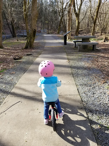 We love this playground! Not only is it accessible to children with disabilities, but it's also great for younger children. It has plenty of slides. The picnic pavilion is perfect for a picnic. The bathrooms are open year-round, and they have a family bathroom. There is a short walking path through the nearby woods with the option to hear a summarized version of the book "The Lion, The Witch, and The Wardrobe" as you walk. A tranquil stream flows by the playground and the walking path, and there is a sand play area as well.