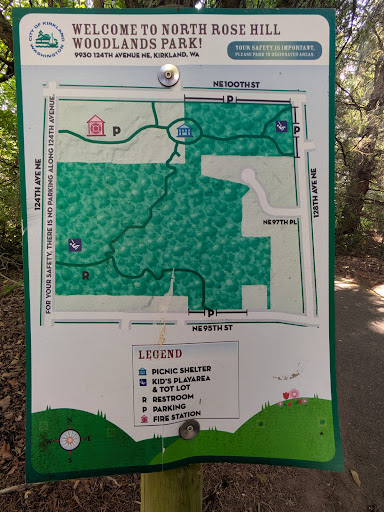 Read moreMagical local park offering a castle themed play structure that’s perfect for hide-and-go seek and imaginative play. Structure includes big kid and toddler options. Huge bonus is that the play structures are fully fenced in with the exception of the castle bridge entrance. Woodlands Park (aka Castle Park) includes several paved walking paths bridged together by wooden boardwalks through wetlands. Enter the park off of NE 100th Street and you’ll pass the large gazebo on your way to the playground. Off of 128th is a mini tot lot playground for the very little ones. Best places to park to experience any of these features are street side on 100th or 95th. Minimal parking available. No bathroom; several months out of the year there’s a porta-potty near...