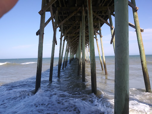 I am one of those people who just enjoy going to the pier! Parking is paid parking, there are a few handicap spots, the parking lot also has some store fronts to share those spots with so it can be difficult to find parking! Once in the Pier building there are restrooms inside, and trinket souvenirs, along with ice cream and cotton candy and drinks, smaller toys for kids or items needed for a beach trip, an arcade and if your feeling lucky or wanting share an experience with your youngins you can get the items you need by renting piles and such to fish off the pier! The pier is 24 hours, as soon as you walk out the building there are benches along the building to sit and watch the waves, for those able you can start an incline up the pier, where you will pass folks walking, taking pictures or pausing to take in the scenery! There are more benches dotted a long to pier, most will have folks fishing, they are often willing to tell of the days catch and the bait they are using, often as you move further down the pier it tends to get a little more congested, Table like structes now erupt from the center of the pier, where the catch of the day are cleaned and the remnants are put down a chute back to the ocean it came from where eager other fish await a free sampling 🦈 I love watching the waters from hi up on the pier, I have seen Baby Dolphin play like any child would in water and I have seen the prey most of us fear and seen the shark take the fisherman's catch off his line, I've seen surfers getting ready to hit the waves, maybe nieve of the prey that swims close to them 🤷 either way I am fascinated by this balancing act if life on land and in 🌊 water, any time I come to Jure or Carolina Beach, I will always stop...