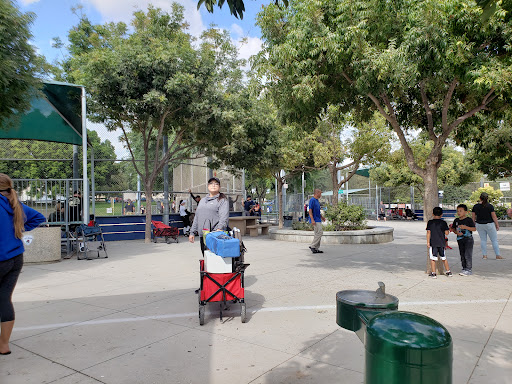Honestly, this park is sketchy. I've passed by this park many times growing up, but I finally stopped to take my two boys, and I wouldn't ever again; especially if I was a female alone. There are people who seem homeless lying around the park with random bags before them; not like they are having a picnic alone. The parking lot is filled with random people who don't even enter the park. There were a few families at the jungle gym, but even they seemed weird. There was an older Asian lady with her younger son and what seemed to be the younger sons kid, but they were taking pictures of my kids and the other kids playing; foregoing taking pictures of their own baby. To top it off, while walking back to my car, there was a weird guy looking into my vehicle. He saw me coming, as I began to hit the lock button many times on my cars remote, and ran back to his car. He sat in his car as I loaded my two babies and watched us. Once all loaded jnto the car, he then started his vehicle and drove to the other side of the parking lot, next to the tacobell, and just stood at the door,never entering. I took two pictures as i left and called the cops, but as I circled back, he was obviously gone. He was up to no good, and I wouldn't recommend this park to anyone. I went to the high school across the street, and I know, for a fact, that one goth kid was stabbed over his iPod shuffle here when they...