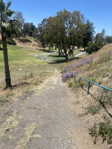 Much of the park is uncovered and unshaded. There are scattered trees and small shaded areas to find a space to walk your dog or picnic. At the north end of the park the noise level can get loud, as the north end is right next to the 8 freeway which is visible from the north hill. Much of the park on this side is also lined by homes/backyards.