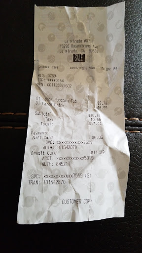 Read moreSome people here writing reviews gotta be a bit more positive and less of a bunch of cheap Losers Stop crying like little girls this theater is affordable just work Two damn hours at work with minimum wage and there you go you have enough to cover the amount to watch a movie and eat some pop corn. None of this Ohhhh I miss what it used to be or Ughhh it’s expensive now Pffttt I could just imagine how your future is going to turn out to be when you decide to buy a house or live in an apartment. You’ll be crying later when you see that it’s much More expensive then paying to watch a movie and have a good time. Quit being negative if you don’t like it Don’t come here but don’t insult another business just because your Idiotic mind couldnt decide to just rent a movie at red Box and stay home. And make some food there then spending and having a negative Mind while doing it. What do you expect this is california there is Money to be made. Go to Texas if you feel things are to...