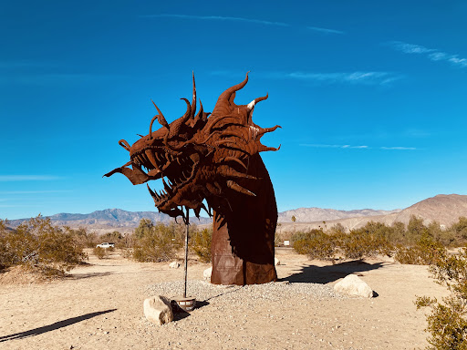 Read moreThe sculptures are scattered over a two mile area in the desert north of Borrego Springs. They are large and dramatic and fun to photograph. Had to deduct a star as I encountered two rattlesnakes I was not expecting, and one of them lunged at me! But it's the desert so maybe I should have expected them! A warning sign might be a good idea for little folks who might be prone to playing on the ground in the dirt near the sculptures. No admission fee and you can park in many places along the road to view individual sculptures and even drive up close to...