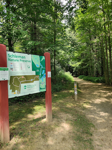 Read moreSchleman Nature Preserve is a nice alternative from Buckeye Woods preserve. Being right next door this preserve offers wooded/trails on dirt stone pathways. This trail can be or either walking running but no bikes allowed. It would definitely be a nice fall walk. The trail can get a bit muddy. Also it is a bit narrow maybe two people shoulder width. Since you do follow some of the creek I would suggest bringing bug spray in the late spring early summer. With the canopy overhead and not much sunlight getting through, there is about a 5 to 10° temperature drop. Didn't come across very many animals on this trip. From the other parking lot as soon as you enter the trail you come up on a fantastic forest of pine trees. Oh many of the bottom branches have no leaves It is pretty amazing how straight these reach...