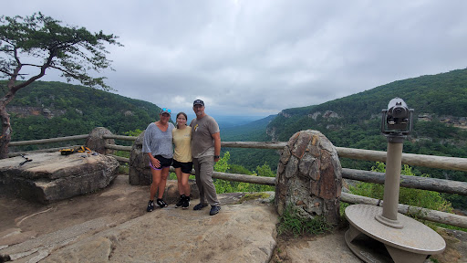 We came to Cloudland Canyon park to hike and see waterfalls. The two main falls are Cherokee Falls and Hemlock Falls. We did hike to both. I would suggest starting with Hemlock Falls as it is the hardest due to the amount of steps you walk down and it is a long way down with about 600 steps and a rocky path. The hike to Cherokee Falls is not so bad. Cherokee falls is also a nicer view in our opinion. There is a cavern/cave system you can visit but it is a couple miles hike from the bottom of Hemlock Falls we were told and you can not enter without a permit. Cloudland Canyon has disk golf and a catfishing pond along with multiple outdoor sites for picnic. The overlooks have amazing views and are easy to walk to. They have cabins to rent that look nice from the outside. The camp ground for RV's looked very nice. We will definitely be back here and I can only imagine what it looks like in the late fall with the...